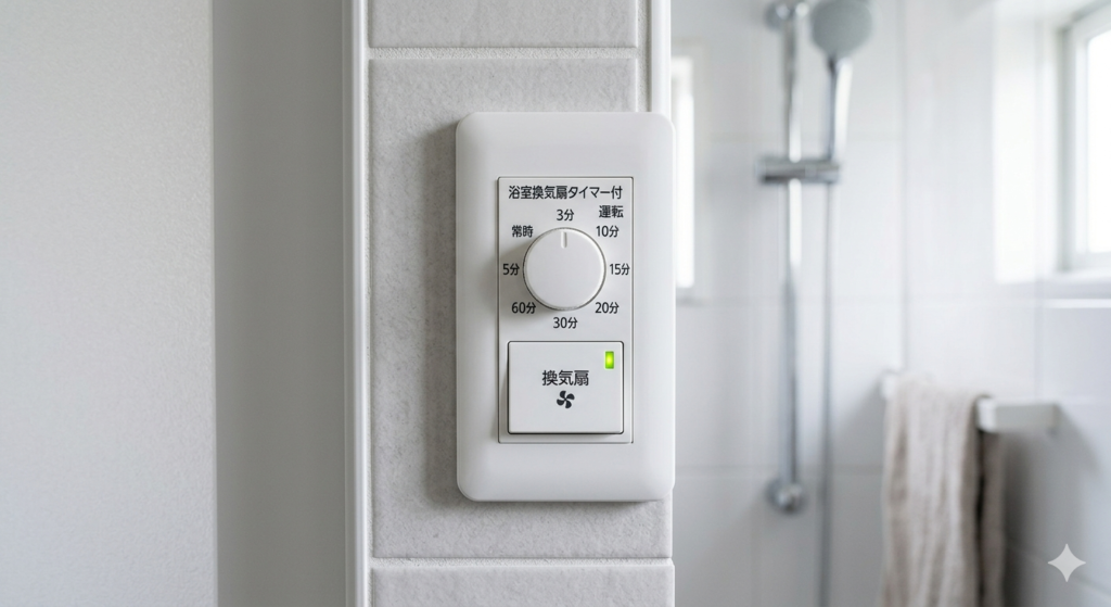 でも、話が進むうちにアパートなどによくあるユニットバスのタイマー付き換気扇のスイッチはどうか、と思いついたのです。